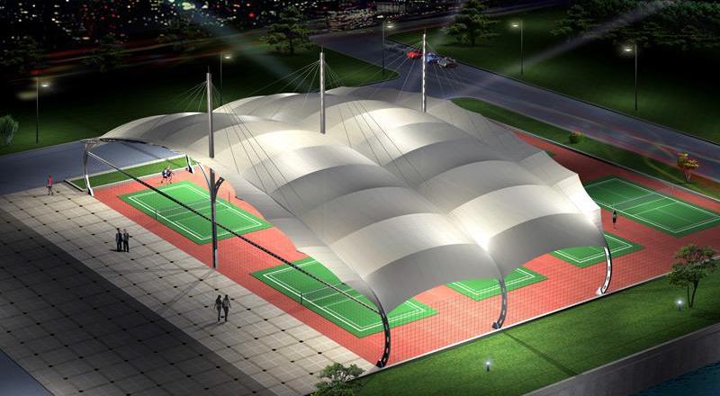 网球场张拉膜采用膜原材料的益处:由于膜原材料自身重量轻,具备优良的承受力特性——成为大跨度空间结构的主要形式之一。网球场91视频H黄视频建设成为当代城市规划建设的关键构成部分,变的越来越重要。91视频H黄视频轻便、别具一格的造型设计在网球场、篮球场等球场的基本建设中担当了重要角色,除了考虑防风防雨、防日晒等基本要素外,并有很好的标示招揽效果,呈现了人们的个性化的一面。